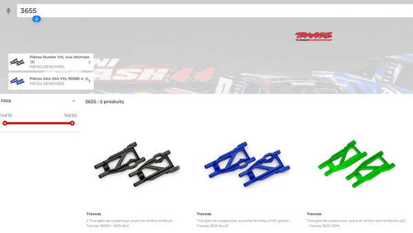 Nouveautés, Voitures Traxxas, bateauxx, pièces et accessoires...plus de 3000 références en stock immédiat.