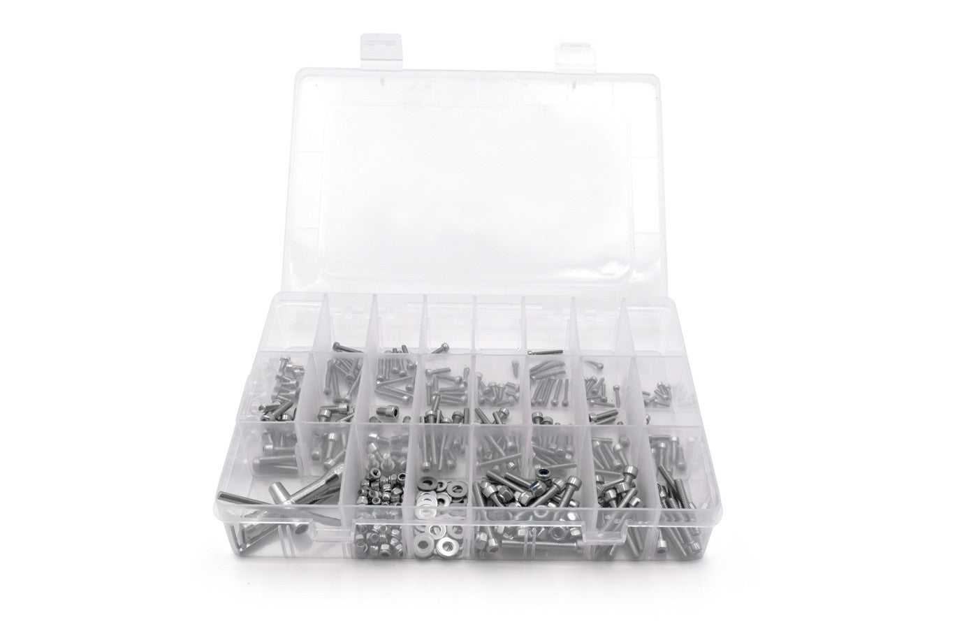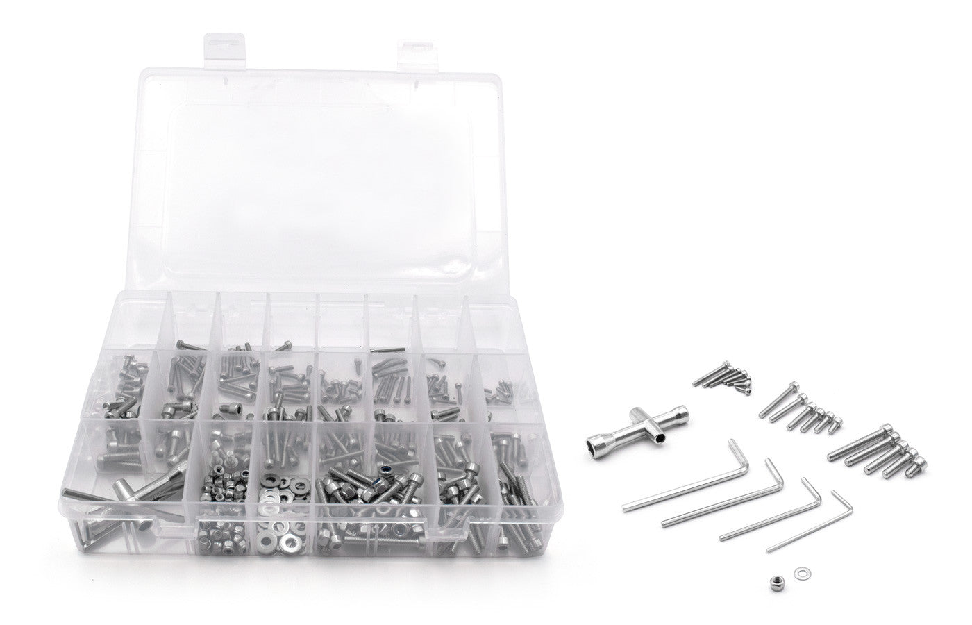 Ce jeu de vis ne devrait manquer dans aucun atelier !Vis, écrous et rondelles de haute qualité en acier inoxydable, y compris les bons outils.Définir le contenu :_____Vis Allen :10x M2x610x M2x1010x M2x1610x M2.5x610x M2.5x1010x M2.5x1610x M2.5x2010x M3x610x M3x1010x M3x1210x M3x1610x M3x2510x M4x610x M4x1010x M4x1610x M4x2010x M4x2510x M4x2510x M4x30_____Écrous:20x écrou d'arrêt M220x écrou d'arrêt M2.520x écrou d'arrêt M320x écrou d'arrêt M4_____rondelles20x M220x M2.520x M320x M4_____OutilsClé Allen 2mmClé Allen 2,5 mmClé Allen 3mmClé Allen 4mmclé Allen