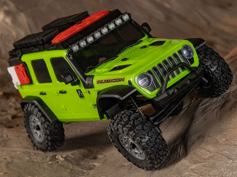 Reconstitution authentique du camion Unlimited 4 portes grandeur nature, la carrosserie du SCX30 Jeep Wrangler JLU est complétée par des LED à l'avant et à l'arrière et des pneus Yokohama Geolandar X-MT sous licence officielle.