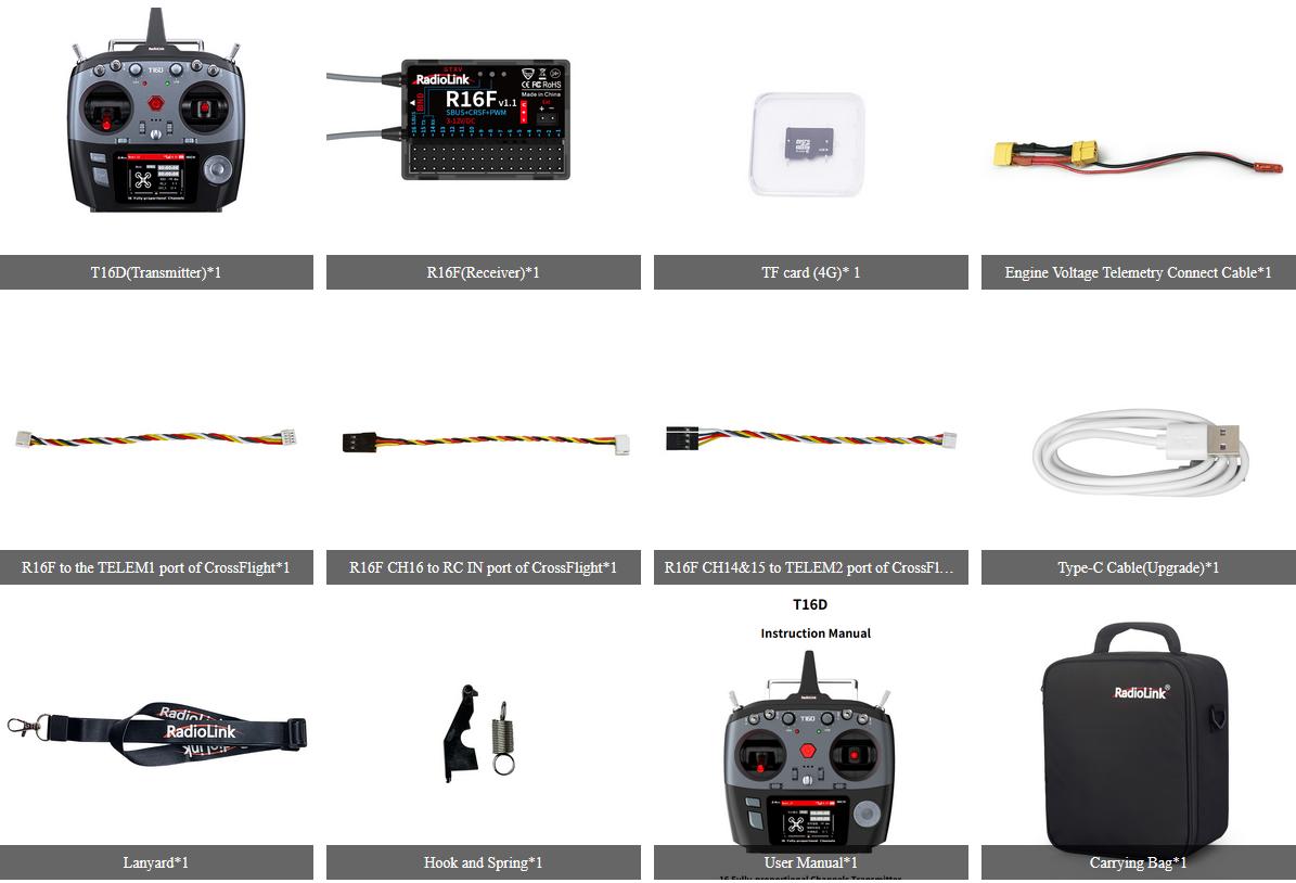 T16D, les 16 canaux entièrement proportionnels avec des modèles et des fonctions complets, supportent les hélicoptères, les avions, les planeurs, les multi-rotors, les drones de course, les drones les véhicules d'ingénierie, les bateaux de course, les robots, les tondeuses à gazon, les bateaux d'appât, les mécas, et d'autres modèles sur le marché.
