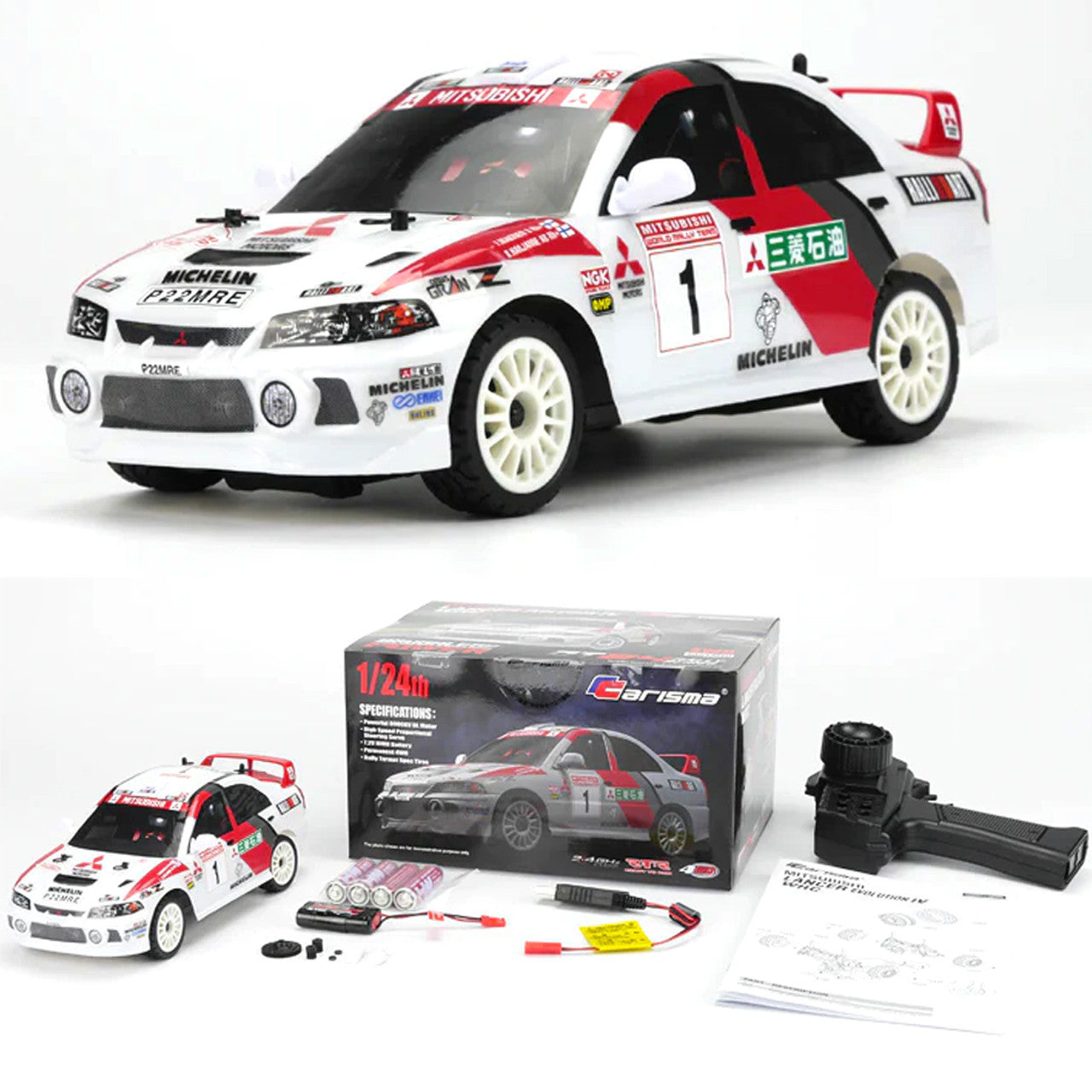 Voiture Carisma GT24 Mitsubishi Lancer evo 4 wrc 1/24ème 4x4 RTR brushless - 86868