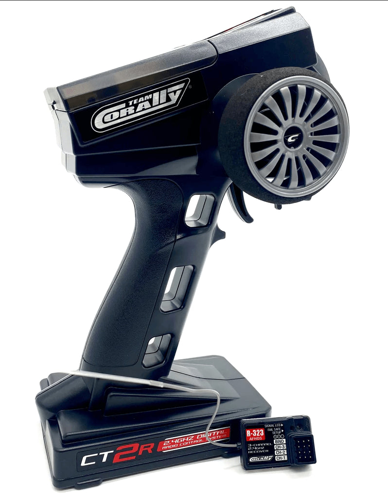 Le Team Corally Torox 185A 4-6S ESC protège la batterie LiPo et offre des options de sécurité et de performance. Le Team Corally Kuron 2050kV 4-Pole Brushless Motor est très rapide et puissant. Le servo de direction HV-7225 HV Metal-Gear permet un contrôle précis de la direction. La confortable radio CT2R 2.4GHz offre une liaison radio solide comme le roc et des fonctions réglables pour le confort de conduite.