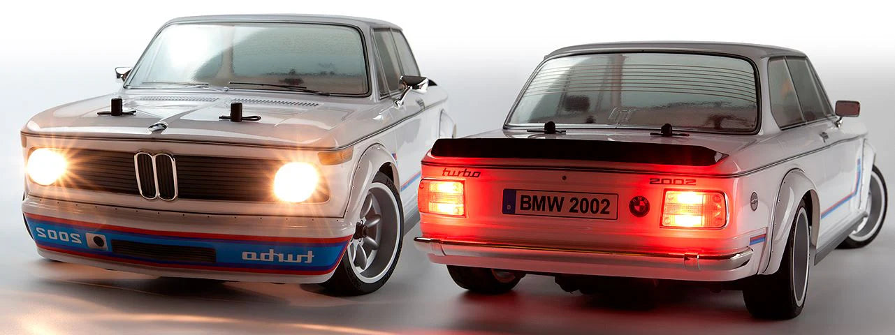 Sous le capot, la version à l'échelle 1/10 de la BMW 2002 Turbo est équipée du châssis de voiture de tourisme HPI Racing Sport 3 ! Avec une transmission par arbre à temps plein, une transmission 4 roues motrices entièrement scellée, une électronique étanche, un équipement radio 2,4 GHz, une suspension à double triangulation entièrement indépendante et des amortisseurs à bain d'huile réglables, elle est prête à rouler dans toutes les conditions. Il a suffisamment de puissance pour les dérapages à 4 roues et des vitesses à couper le souffle en appuyant sur la gâchette !